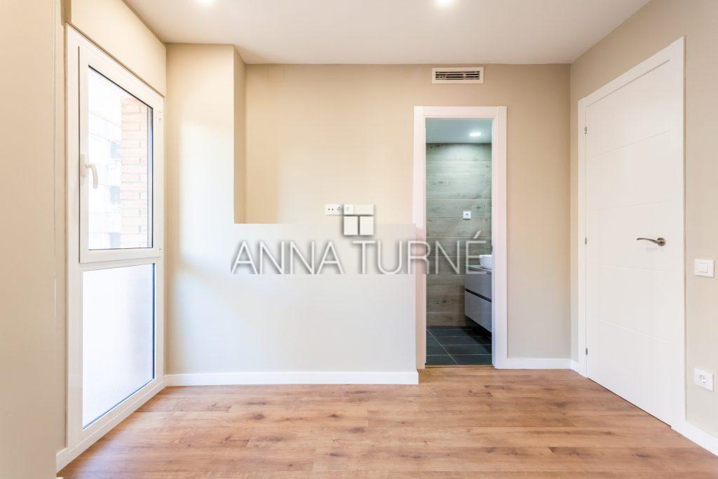 Pis totalment reformat i exterior a carrer, és una tercera planta, té una superfície de 112 m² construïts amb una gran terrassa de 16m2. Consta de Saló menjador de 31 m² amb gran cuina americana de disseny amb electrodomèstics integrats i accés a safareig. Tres habitacions de les quals una doble de 12,3 m², una doble suite de 9,8m2 amb gran bany complet de 4,9 m², i una individual de 8m2. Hi ha un altre bany gran de 5,1m2 complet. Instal·lacions de llum, aigua i gas noves, fusteria d’alumini doble, bomba de fred i calor per conductes en tot el pis, parquet Ac5 i portes massisses lacades.